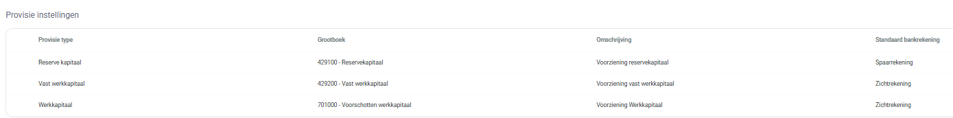 In Vera, provision settings can be managed for the purpose of requesting provisions for a certain type of capital. To do so, follow the following steps: