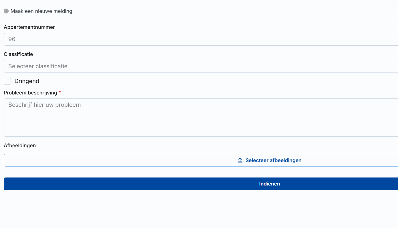 - Appartement nummer: de mede-eigenaar moet opgeven voor welk appartement nummer de melding wordt gemaakt.