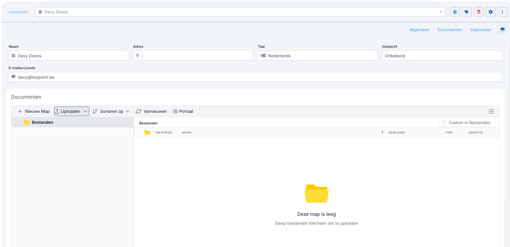 In de details van het contact, kunnen gegevens bewerkt worden, labels gewijzigd/toegevoegd en verwijderd worden. Daarnaast kunnen er ook document gekoppeld worden en is er een overzicht beschikbaar van de gebouwen waaraan het contact is gekoppeld.