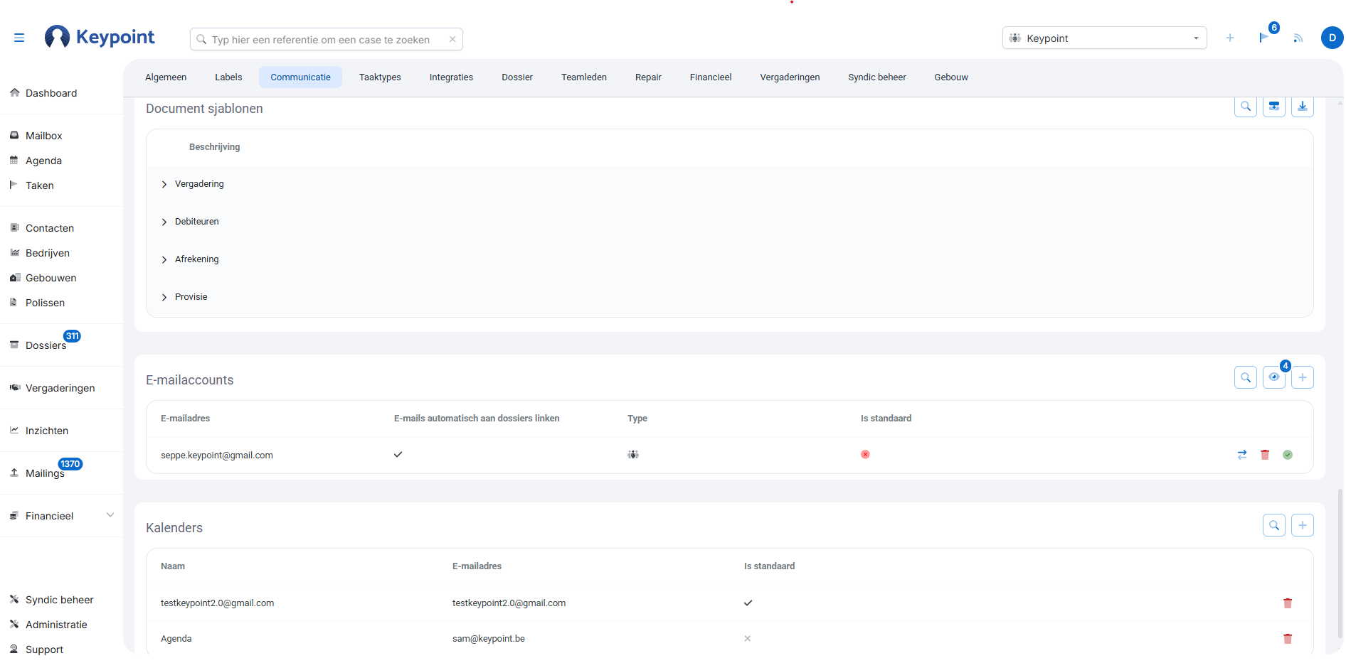 Vera biedt verschillende integraties via API, waaronder de integratie van mailboxen & gekoppelde kalenders.