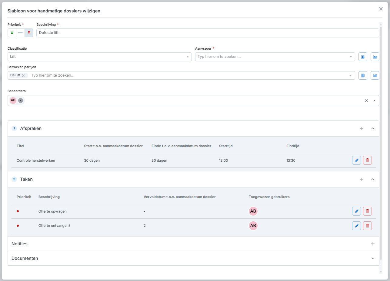 - Afspraken, taken, notities en documenten toevoegen/wijzigen indien nodig.