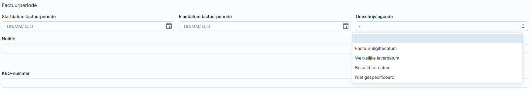Hierbij heb je de mogelijkheid om een factuur periode op te geven.