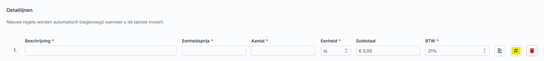Door bij detaillijnen op het "#" icoon te drukken is het mogelijk om ook een artikel te registreren, dit kan bijvoorbeeld een EAN code zijn.