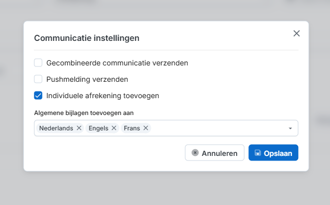 Hier verschijnt de optie om de individuele afrekening toe te voegen aan de mailing.