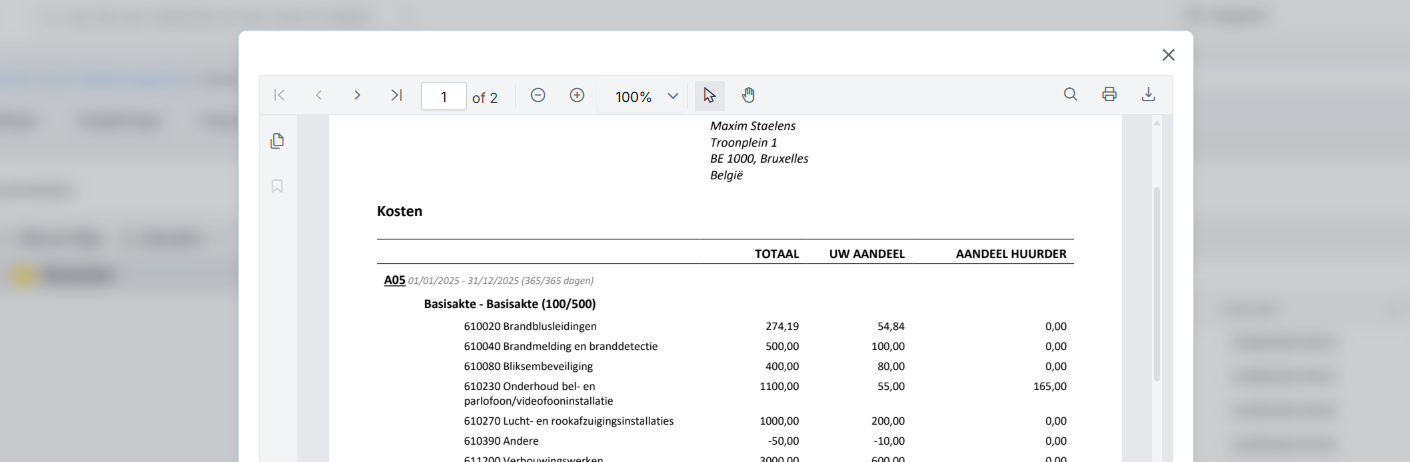 Binnen Vera is het mogelijk om het aandeel van de huurder binnen een afrekening weer te geven.