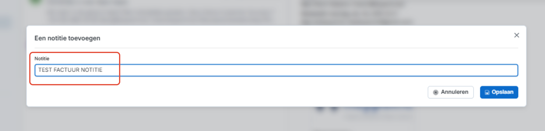 Vul hier de gewenste notitie in en klik op 'opslaan'.
