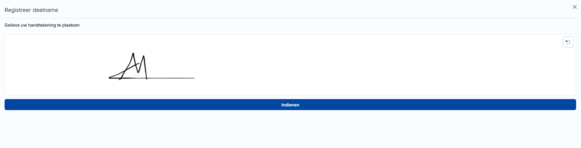 Eens op dit scherm kan u uw registratie bevestigen door uw handtekening te plaatsen en te klikken op 'Indienen'.